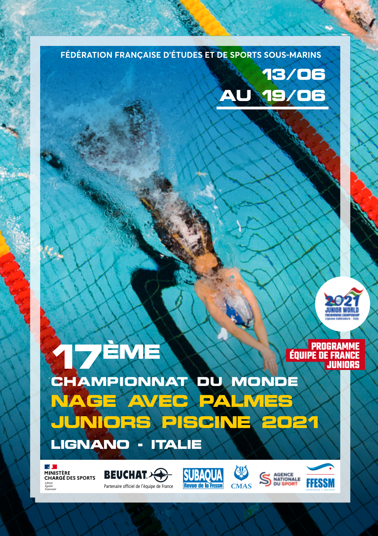 Retrouvez le programme du 17ieme championnat du monde de Nage avec Palmes Junior