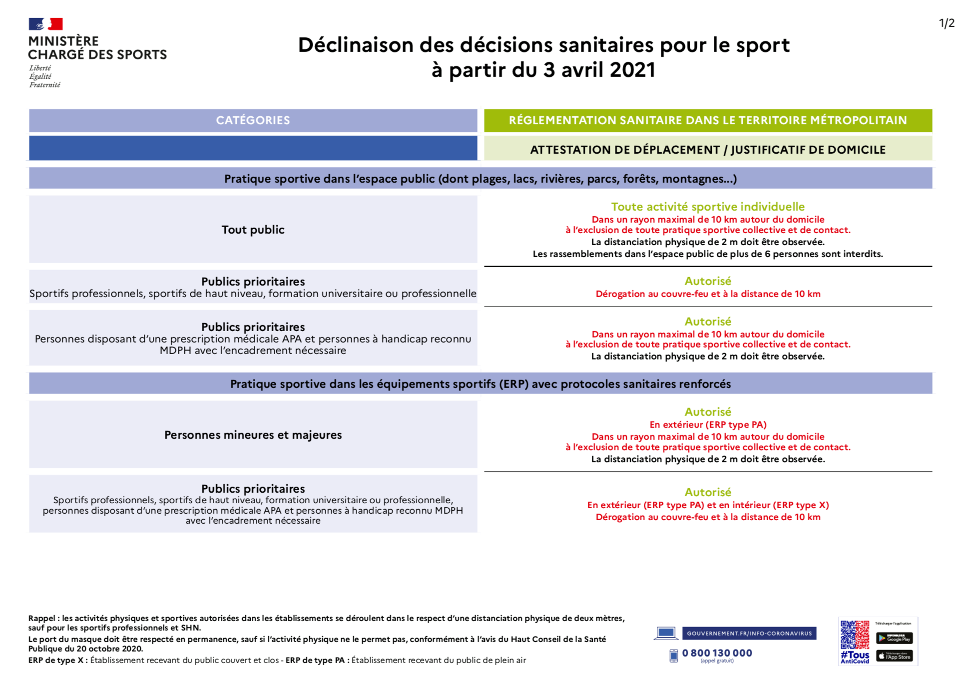 Déclinaison des décisions sanitaires pour le sport à partir du 3 avril 2021
